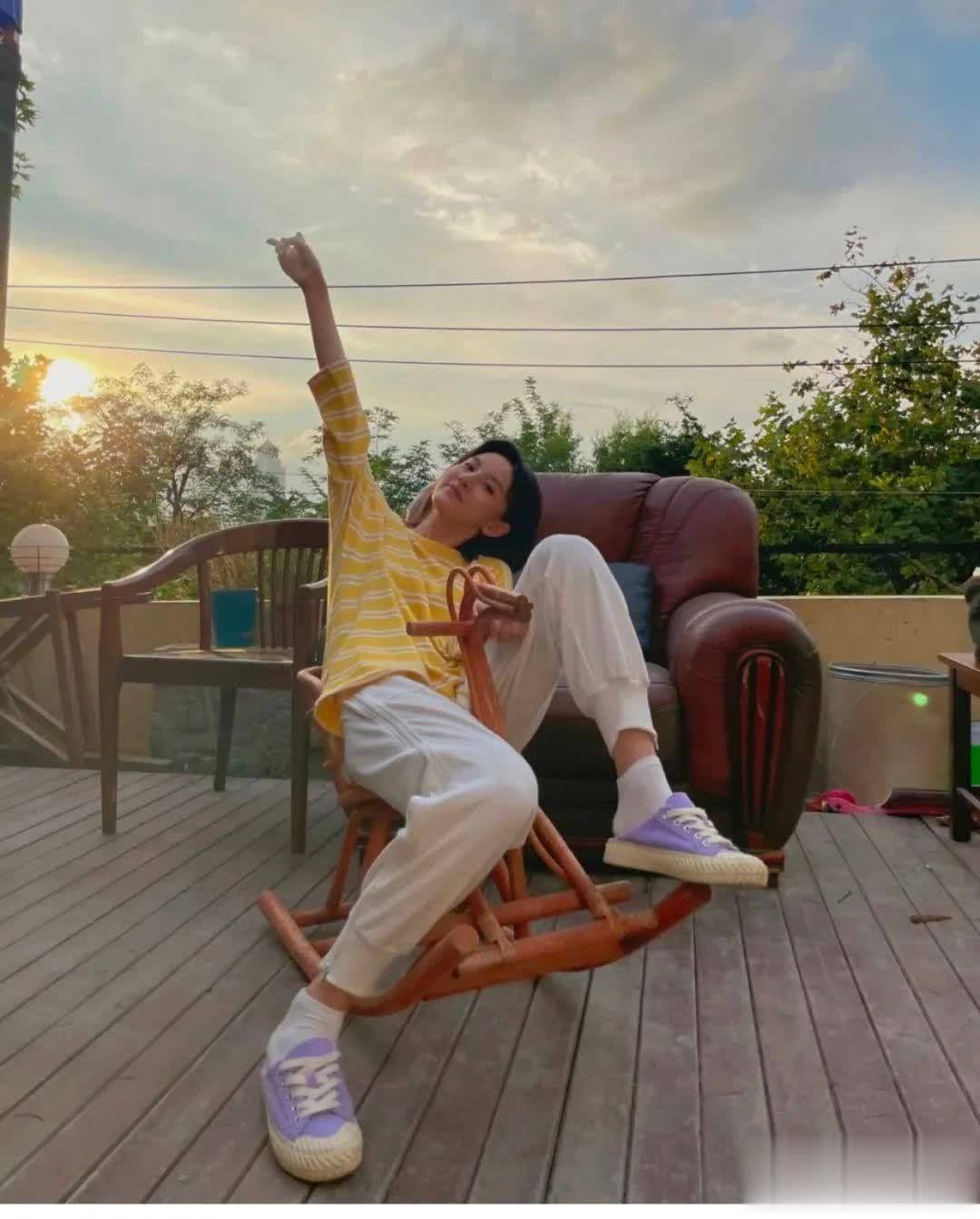 和很多女明星不同,她在鞋子的选择上很有个性,毫不夸张地说,她更喜欢一些看上去偏男孩子的鞋子,比如有点肥的运动鞋。下面这一身,很难想象穿在她这么甜美的女孩身上,实际效果却很出彩。